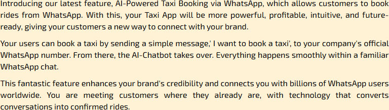Experienced businesses know that offering convenient transportation options for their employees can be a game-changer. With our "Corporate Rides" feature, your platform can become the go-to provider of taxis for companies to manage their transportation expenses.